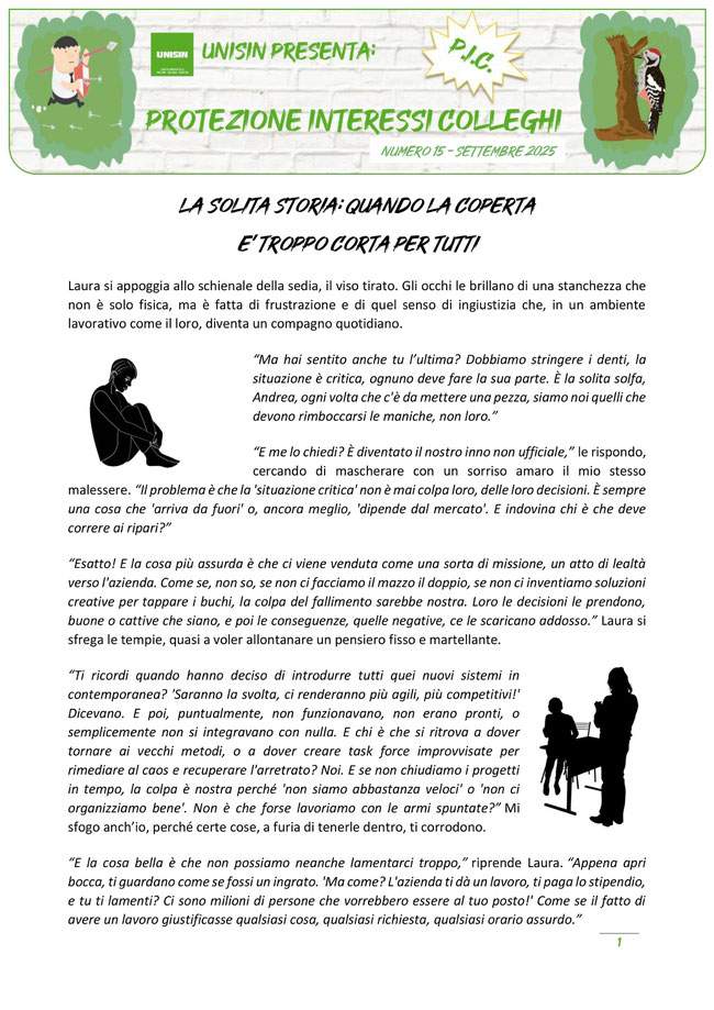 In sintesi, l’Azienda sta reggendo l’urto con le sfide del mercato, stiamo andando meglio dello scorso anno, ma non saremo comunque in linea con l’obiettivo (troppo ambizioso?) fissato dagli Azionisti. Come Unisin lo avevamo, purtroppo, predetto. Prepariamoci quindi a sentirci dire che gli Azionisti non saranno contenti e che la colpa sarà sempre dei “soliti noti” (leggasi lavoratori), ergo dovremo fare ancora di più con sempre meno, magari per recuperare non “una perdita” ma “un mancato guadagno”. Ovviamente, tutto condito dai soliti discorsi che, se non si guadagna quanto si aspettano, le conseguenze saranno sempre e solo a carico dei dipendenti [...]